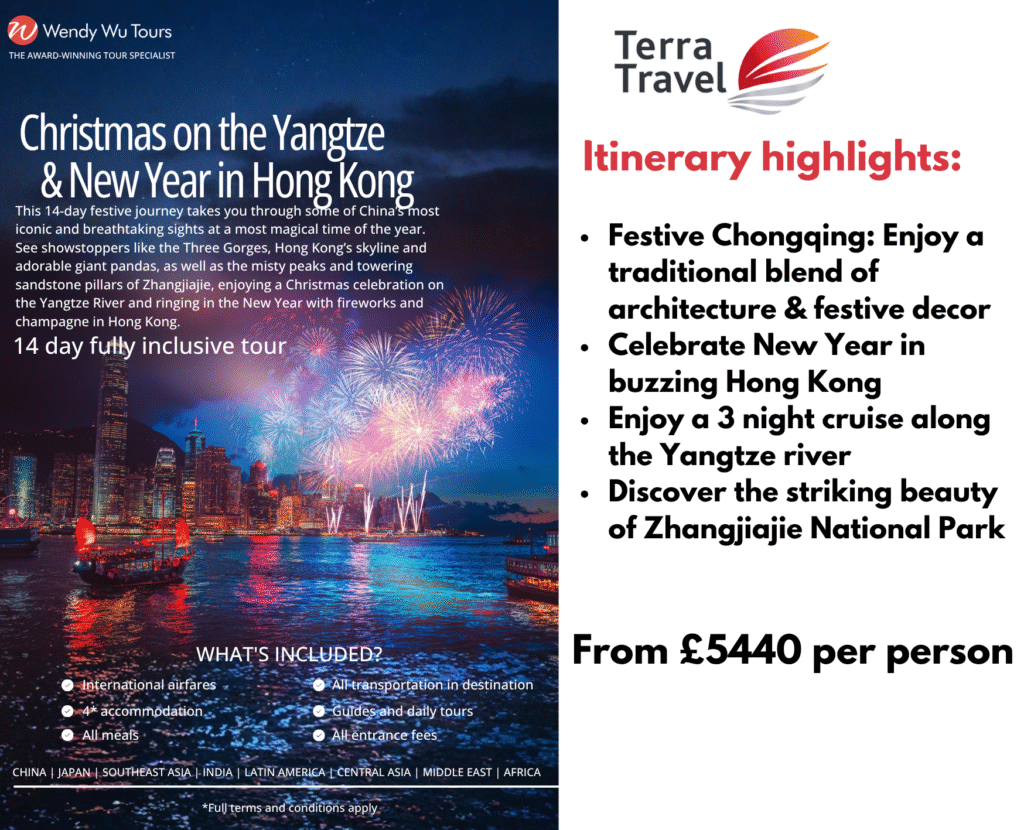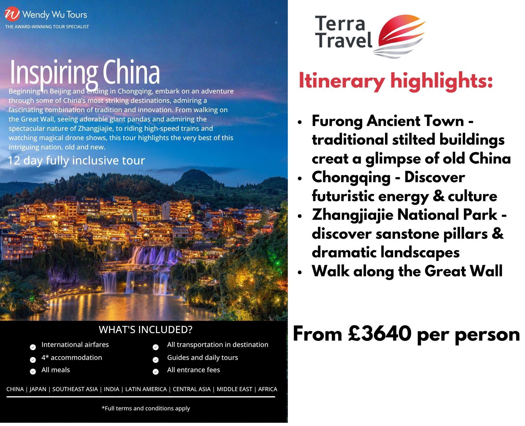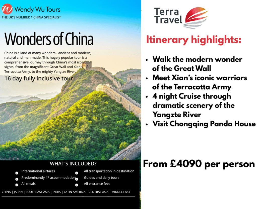 And as a bonus, for a limited time only, we’re giving away an additional £100 per person off any Wendy Wu Tour booked through Terra Travel, along with a FREE case of wine with each booking!