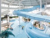 The hotel’s standout feature is its exhilarating water park with slides and a surf machine, ideal for keeping children entertained for hours. When it’s time to unwind, the wellness spa area provides a escape with hot tubs, sauna and steam bath facilities. Dining is a highlight with multiple restaurants and bars, including a poolside snack bar for convenient refreshments. Activity-seekers can take advantage of the fitness centre, tennis courts and table tennis facilities, while evening entertainment and a nightclub ensure the fun continues after sunset.