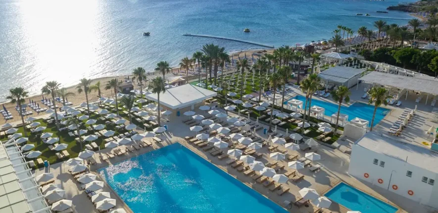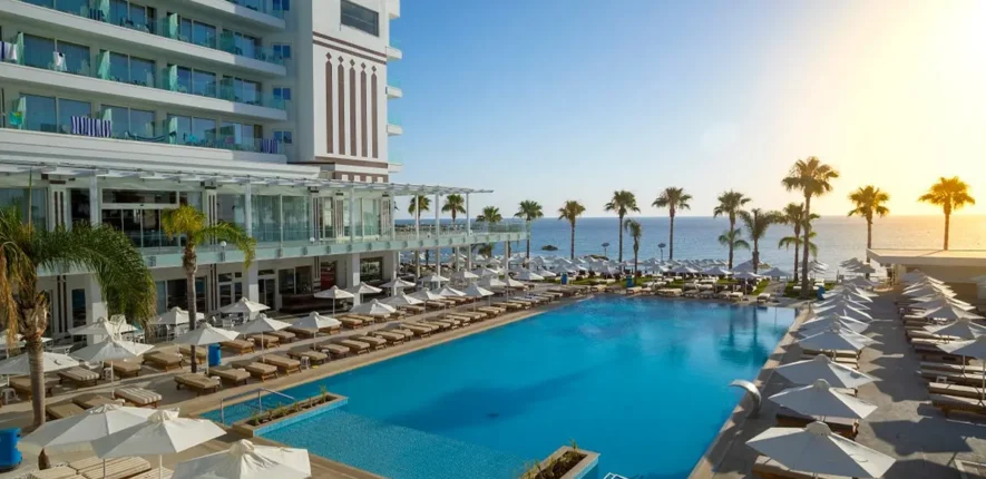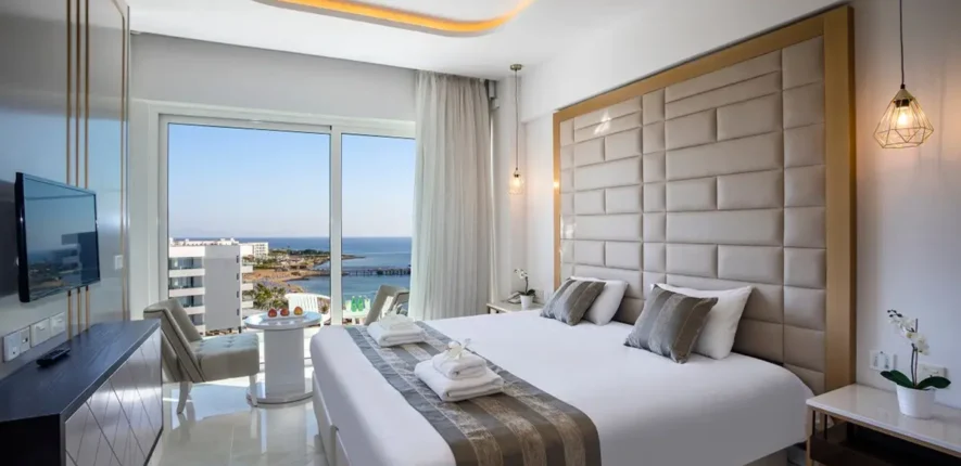 This grand complex with sweeping views of Vrissiana Beach offers a five-star stay in the buzzing resort town of Protaras. Its central beachfront location means everything from water sports to nightlife are within easy reach, and there are excellent facilities within the hotel itself, too.