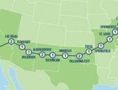 Chicago → Springfield → St. Louis → Tulsa → Oklahoma City → Amarillo → Tucumcari → Albuquerque → Holbrook → Flagstaff → Las Vegas → Santa Monica