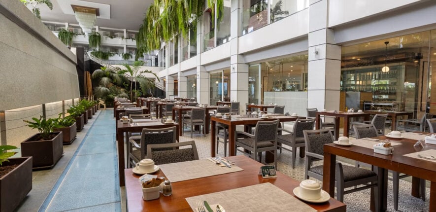 Dining is a highlight, with one of the most popular brunch experiences on the island available daily from 8am to 12pm. Lunch can be enjoyed poolside with à la carte options, while evenings are relaxed and atmospheric with cocktails, live acoustic music, and resident DJs in the hotel’s botanical gardens.