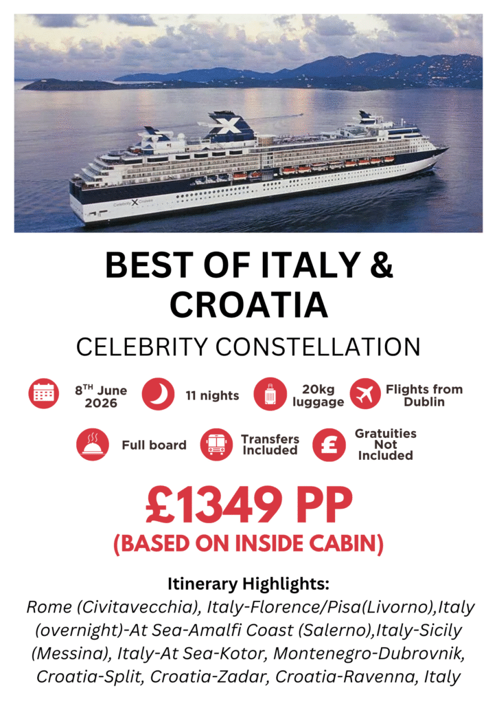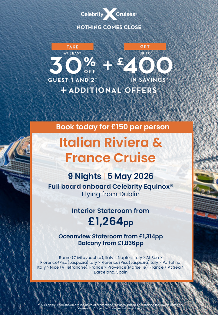 Terra Travel have teamed up with Celebrity Cruises to bring you some fantastic offers on sale now up until 3rd November! That’s plenty of time to get your 2026 cruise sorted!